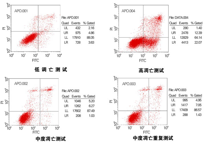 ·準(zhǔn)確:能準(zhǔn)確區(qū)分正常細(xì)胞、早期凋亡細(xì)胞、晚期凋亡細(xì)胞和壞死細(xì)胞,并計數(shù)各群細(xì)胞的比例。