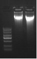 提取3.2×107 293T培養(yǎng)細(xì)胞的DNA,洗脫體積:2 mL。1%瓊脂糖凝膠電泳,5v/cm 電泳15 min,上樣量:2uL。