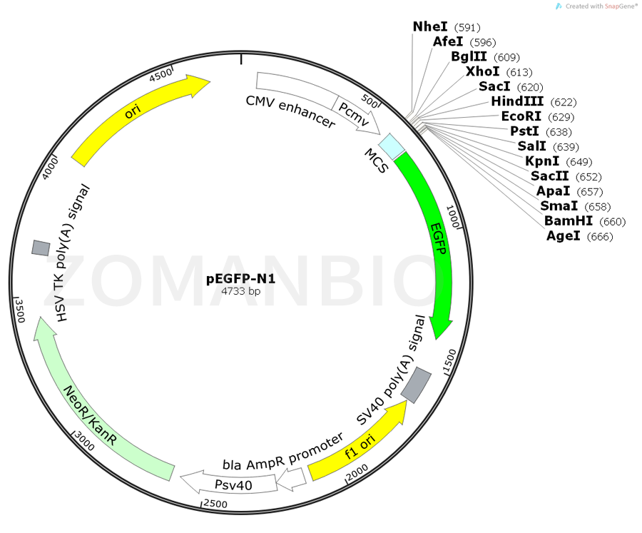 質粒序列請下載:ZK411pEGFP-N1哺乳熒光質粒.txt