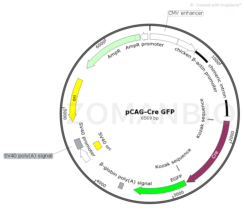 質(zhì)粒序列請(qǐng)下載:ZK580pCAG-CreGFP同源重組質(zhì)粒.txt