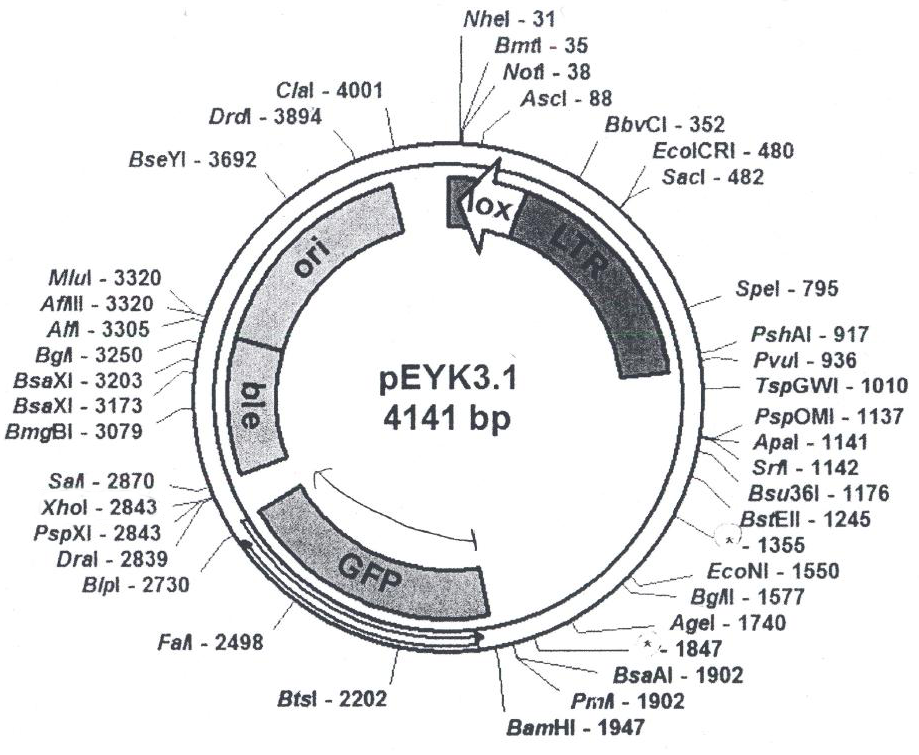 pEYK3.1質(zhì)粒的參考文獻(xiàn)是Novel retroviral vectors to facilitate expression screens in mammalian cells.