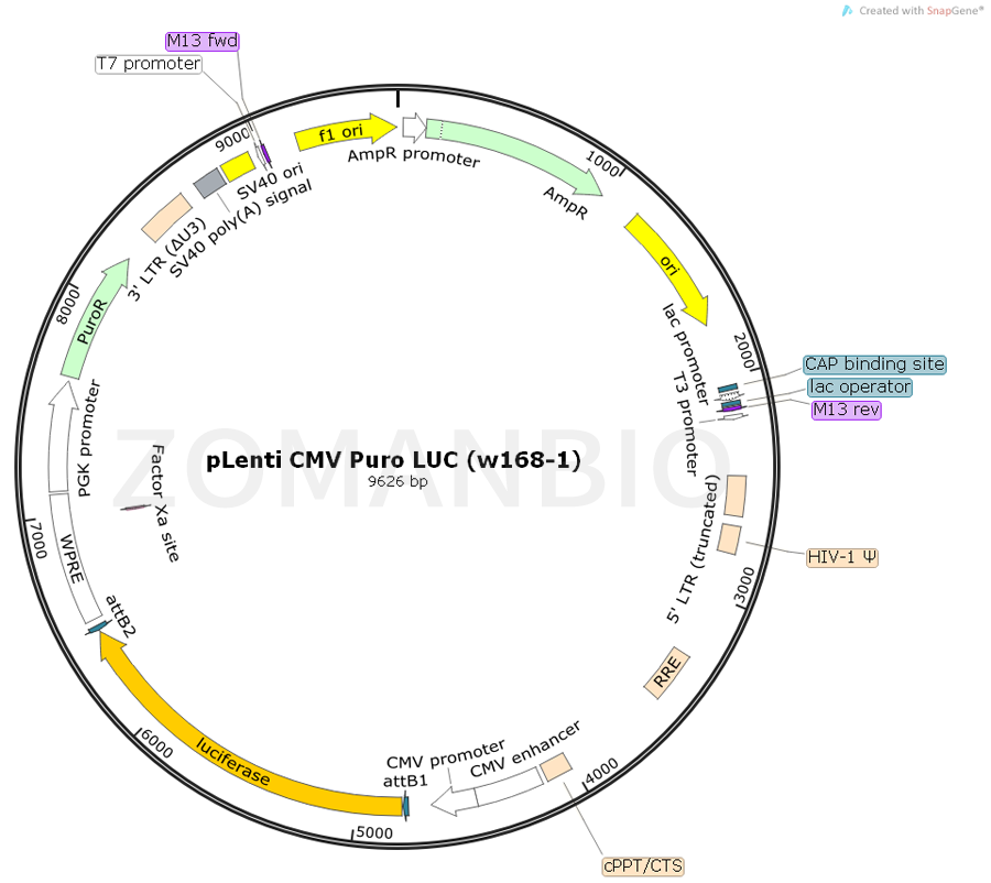產(chǎn)品名稱:pLenti CMV Puro LUC (w168-1)