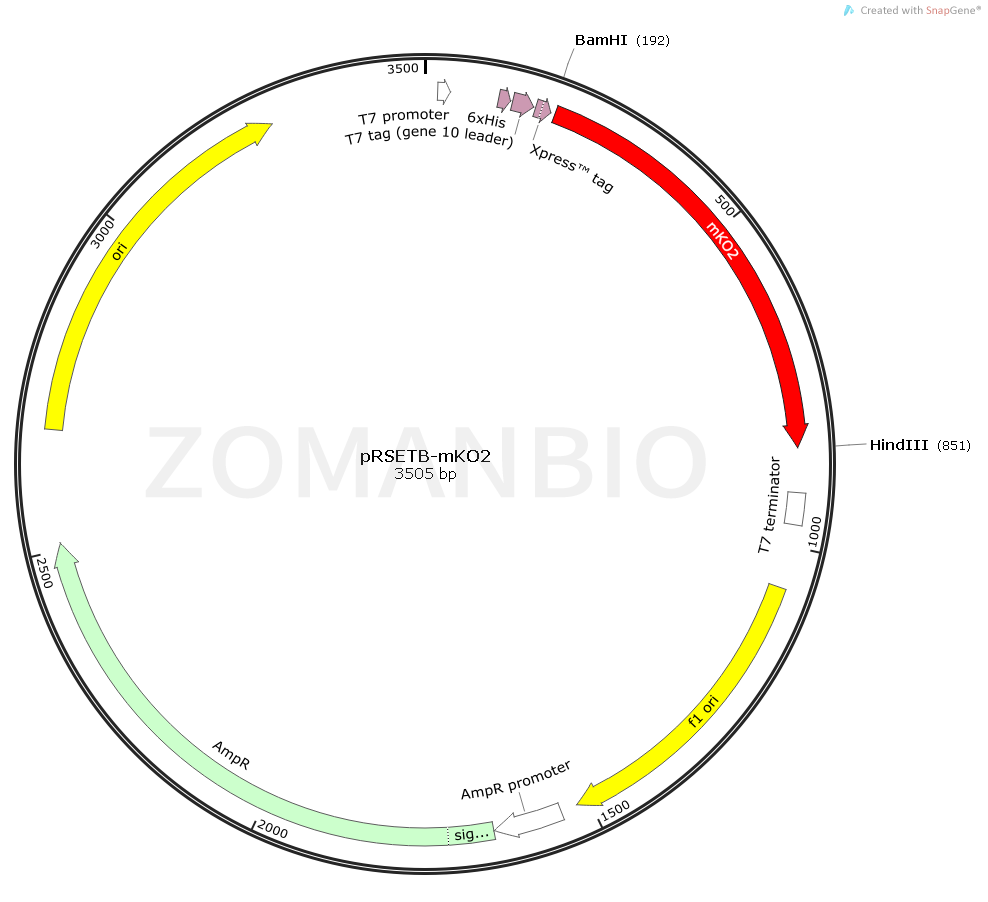pRSETB-mKO2大腸熒光質(zhì)粒。