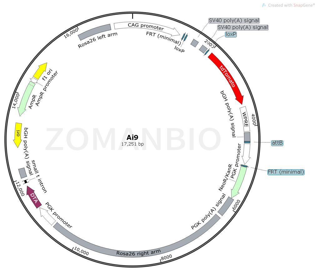 Ai9是一個哺乳細胞紅色熒光蛋白表達質(zhì)粒。。