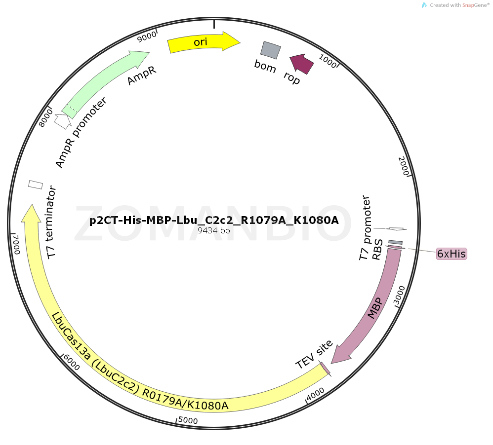 p2CT-His-MBP-Lbu_C2c2_R1079A_K1080A大腸編輯質(zhì)粒。