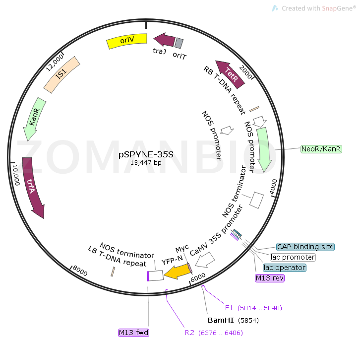質粒序列請下載:ZK2352pSPYNE-35S植物雙分子熒光質粒.txt